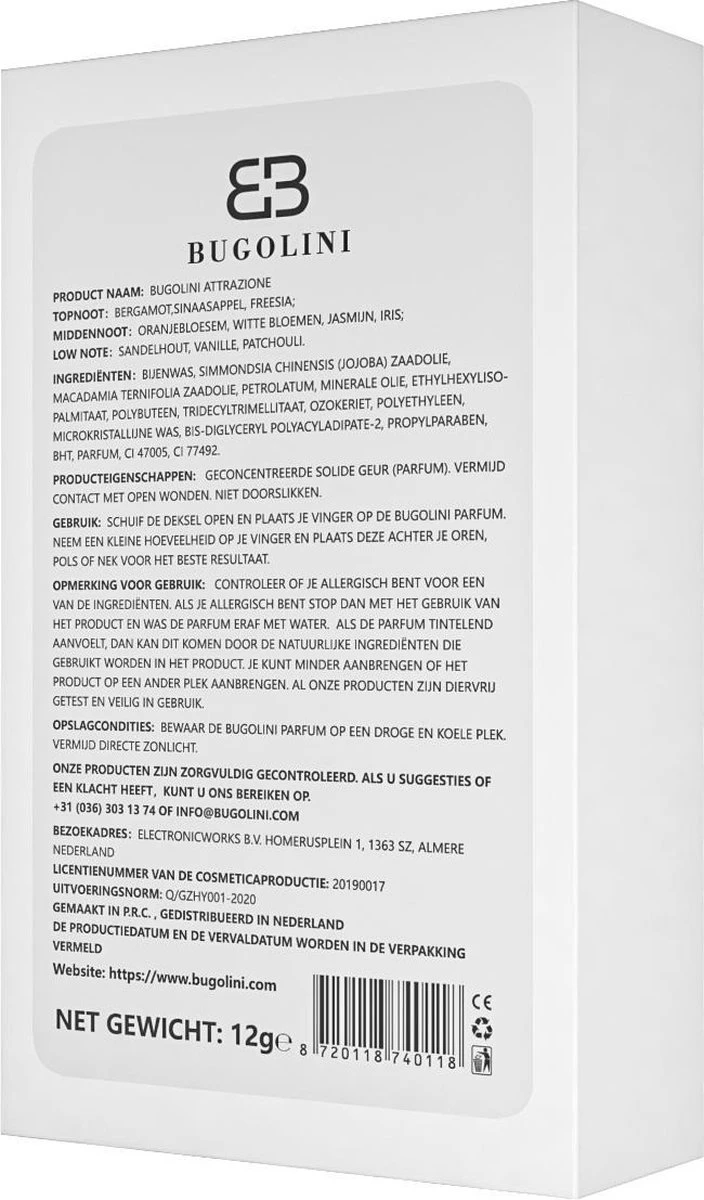 Productkenmerken: Solide parfum met geconcentreerde geur. plaats voor de beste resultaten op pols en hals. voorkom open wonden. niet doorslikken.